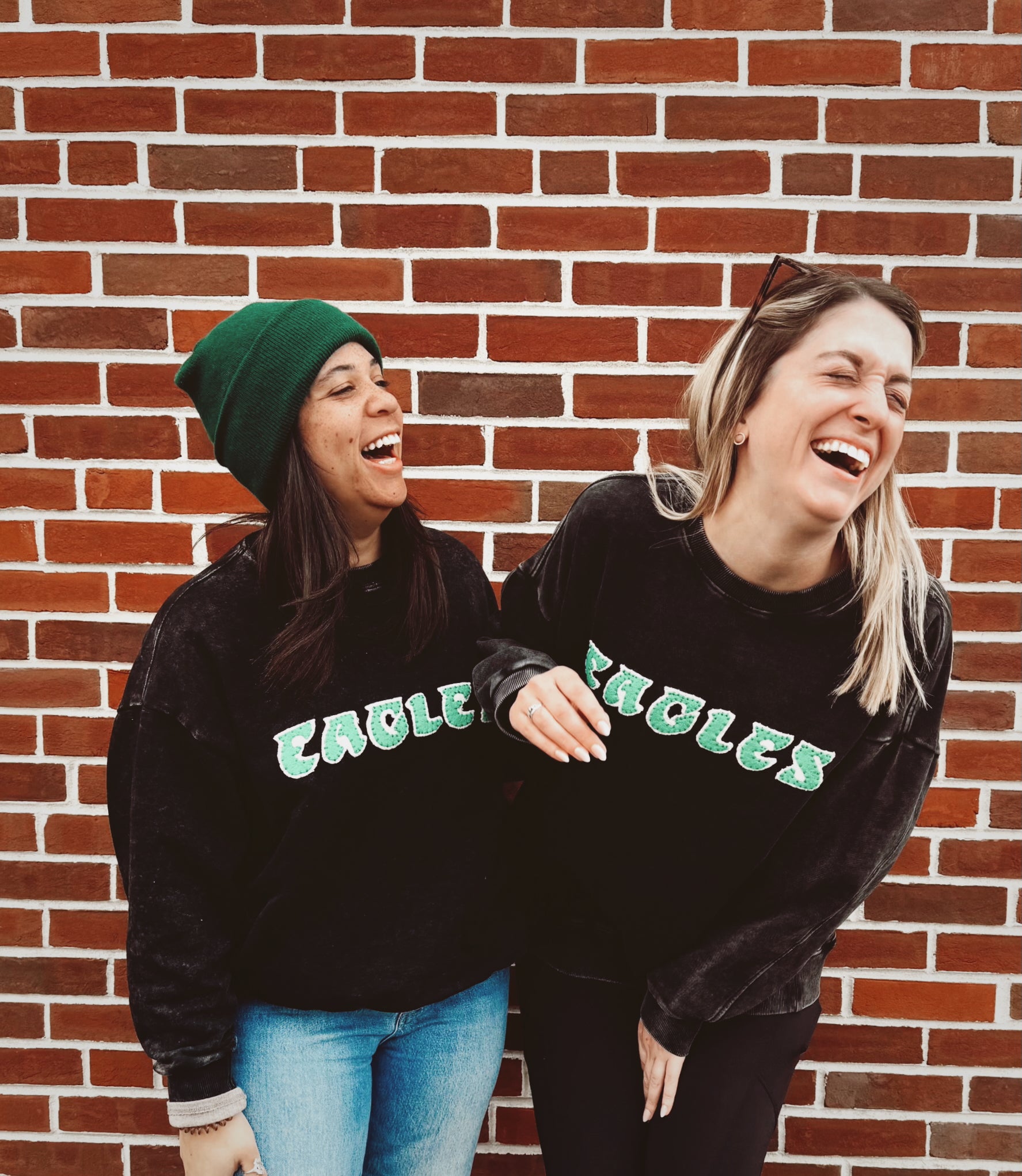 Show off your Eagles pride in serious style with this one-of-a-kind, hand-sewn crewneck! Each sweatshirt is carefully crafted by hand — from cutting every felt letter to stitching it perfectly onto your ultra-soft crew. This cozy crewneck features pockets (yes, pockets!) and is available with two fun back options: