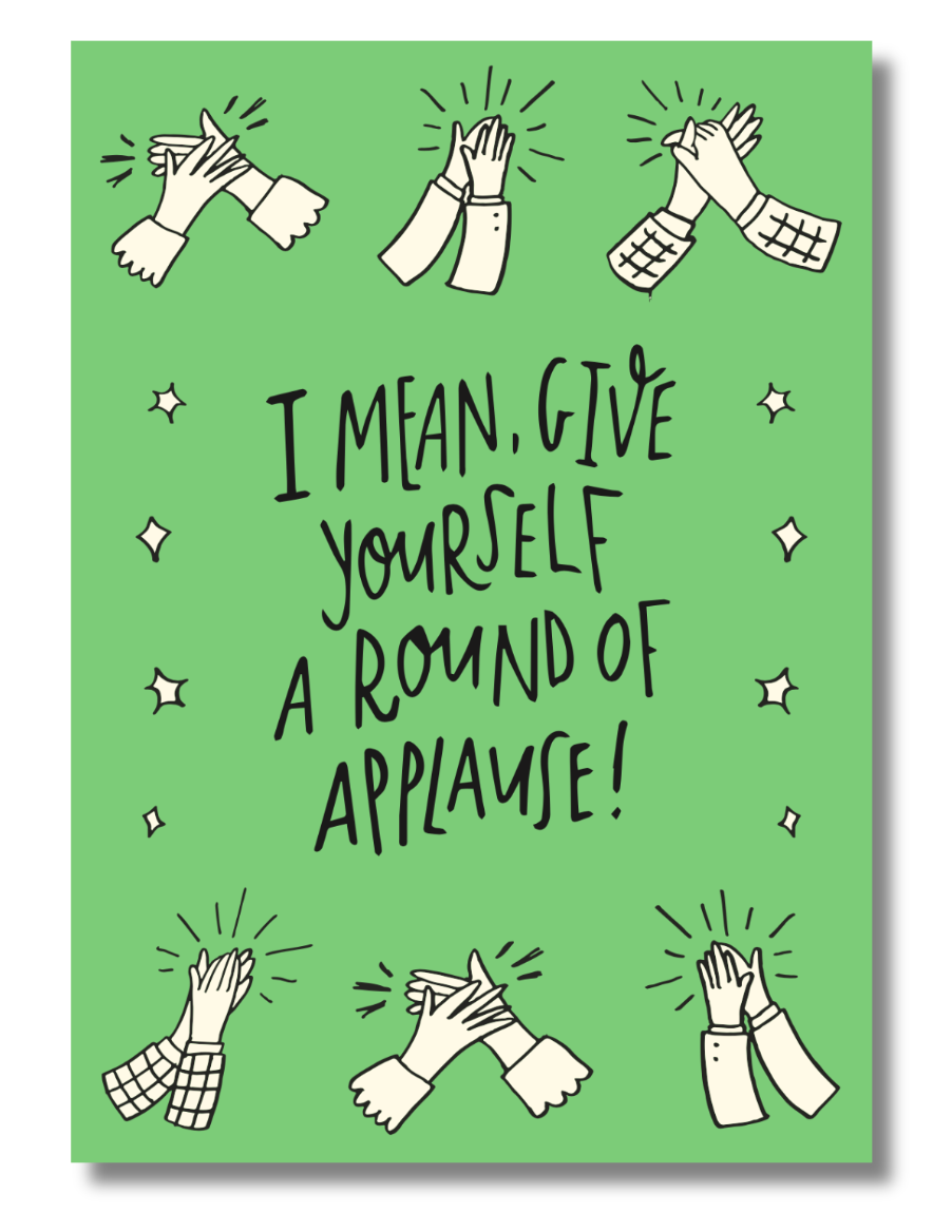 Whether they crushed a goal, nailed a presentation, or simply got out of bed today—this card is for the moment. Featuring playful, illustrated clapping hands and the phrase “I mean, give yourself a round of applause!”, this 5x7 card is the perfect blend of humor, celebration, and charm.
