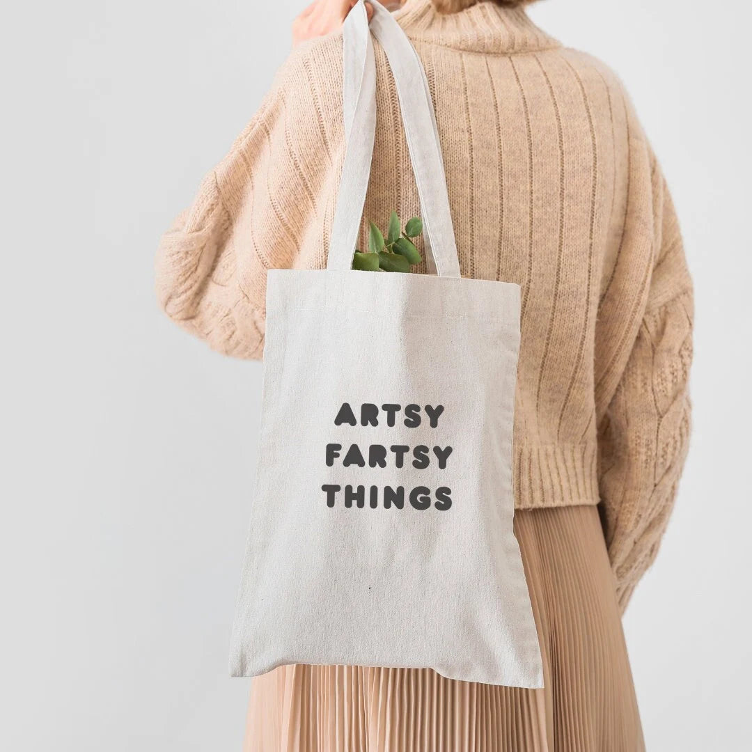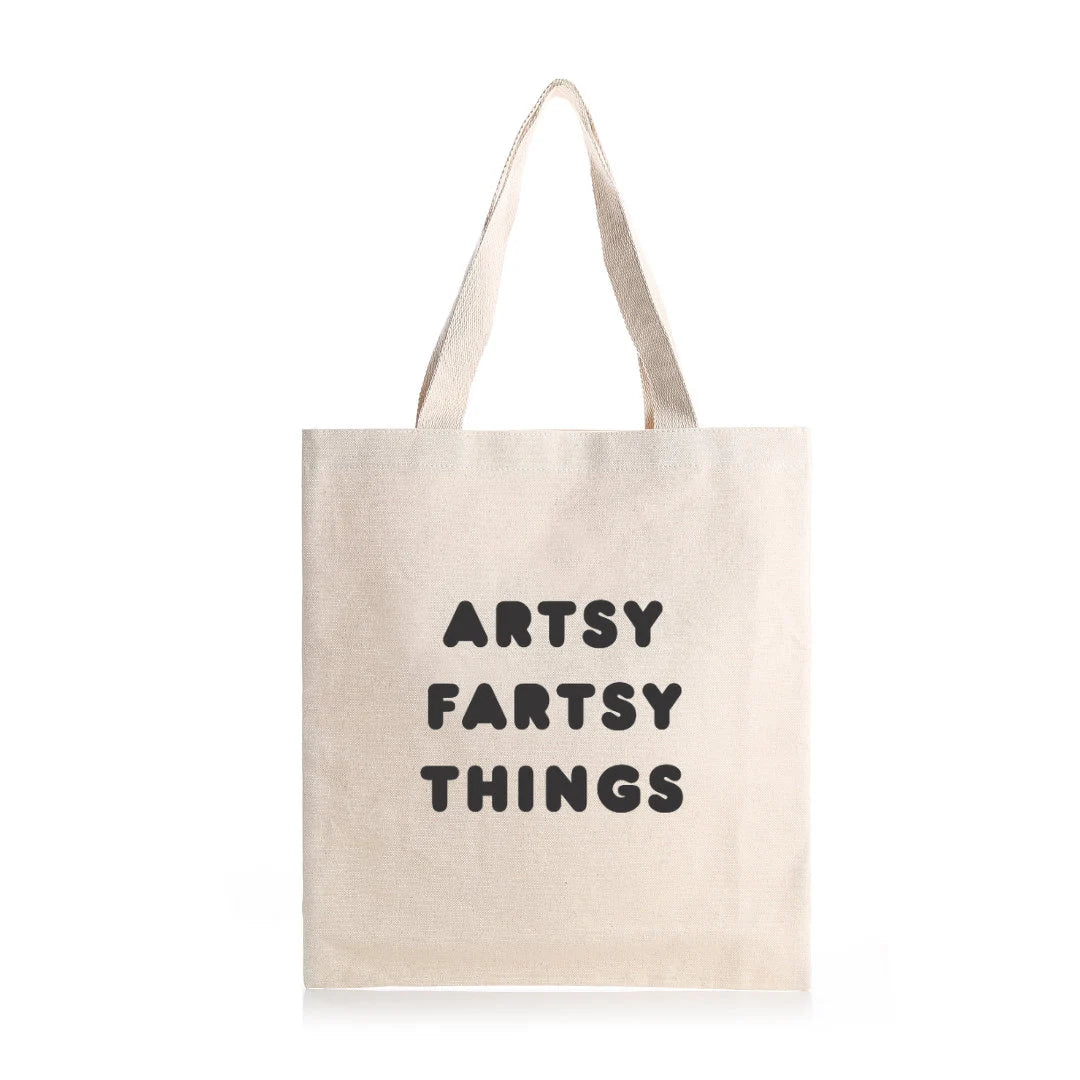 Canvas Tote Bag – "Artsy Fartsy Things" | Funny Artist Gift | Black Text Tote | Creative Person Gift | Aesthetic Art Supplies Bag