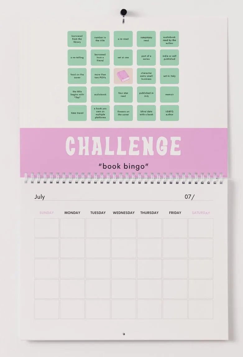 Say hello to your new favorite reading companion! This undated Bookish Reading Challenge Calendar is perfect for readers who want flexibility and inspiration all year long. Each month features a fun, themed challenge—plus fill-in date boxes so you can start any time of year!